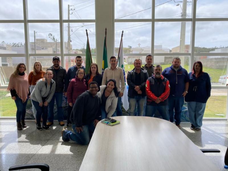 O prefeito Reginaldo Vilela, chefe do setor de Recursos Humanos (RH), Cleide Jonaits, assessoras pedagógicas e educacionais do município |