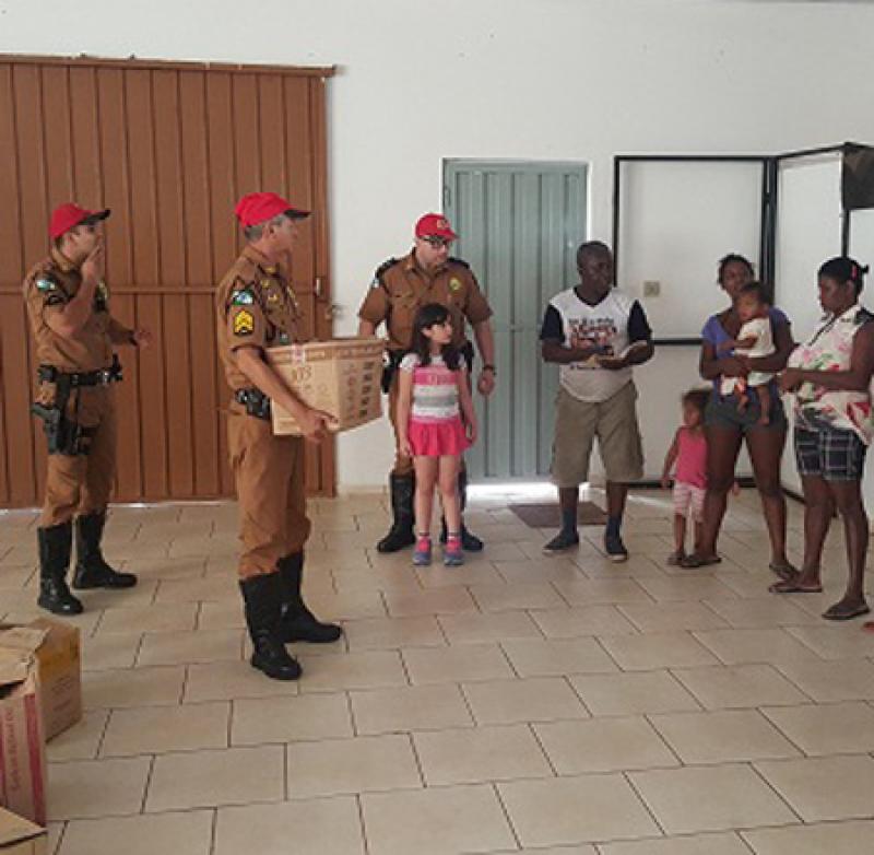 Na tarde desta quarta-feira, na Paróquia São Pedro, novamente os policiais rodoviários estaduais,através de seu comandante,tenente Piske, realizaram a entrega de diversas cestas básicas para a comunidade jacarezinhense.