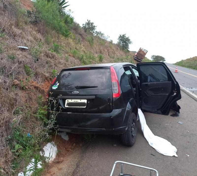 O Ford Fiesta colidiu frontalmente contra um caminhão/Volvo FH.