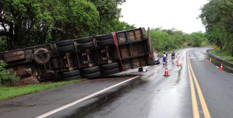 Uma carreta com placas de Joaquim Távora tombou na tarde deste sábado (26), no quilômetro 34 da BR-153, próximo ao viaduto do Ubá, entre Santo Antônio da Platina e Jacarezinho.