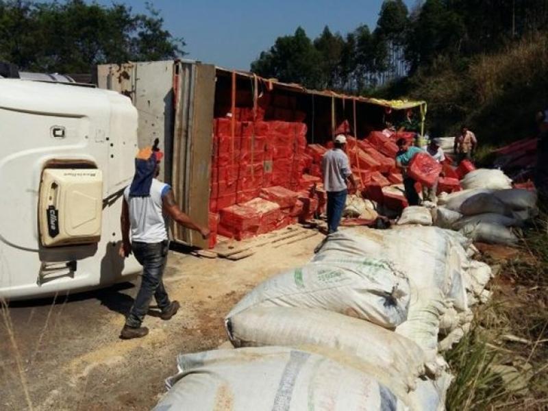 Uma carreta carregada com farelo de arroz tombou e revelou cigarros contrabandeados escondidos sob a carga na manhã desta segunda-feira (21), na Rodovia Alfredo de Oliveira Carvalho (SP-249) entre Carlópolis e Fartura(SP), segundo a Polícia Rodoviária.