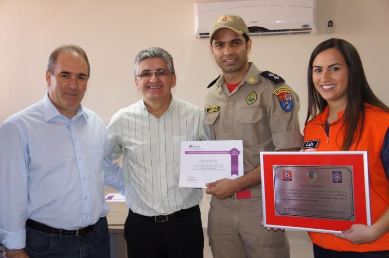 A campanha “Cidade Voluntária” lançada pela 3ª Coordenadoria Regional de Proteção e Defesa Civil (CORPDEC) teve como premiada a cidade de Jacarezinho. O prefeito de Jacarezinho Sérgio Eduardo de Faria, Dr. Sérgio, e a Coordenadora da Defesa |