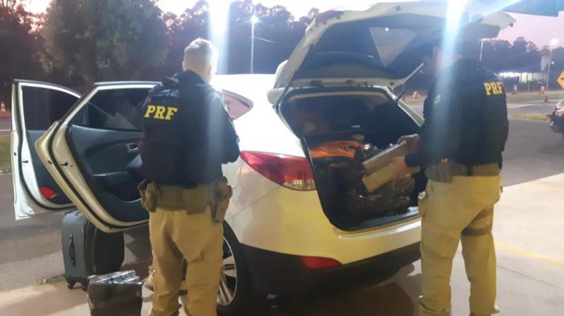 A Polícia Rodoviária Federal apreendeu um carregamento de maconha no início da manhã desta sexta-feira (29) na BR-369, em Jacarezinho/PR. O condutor do veículo apreendido, um Hyundai Ix35, foi preso em flagrante pelo crime de tráfico de drogas.