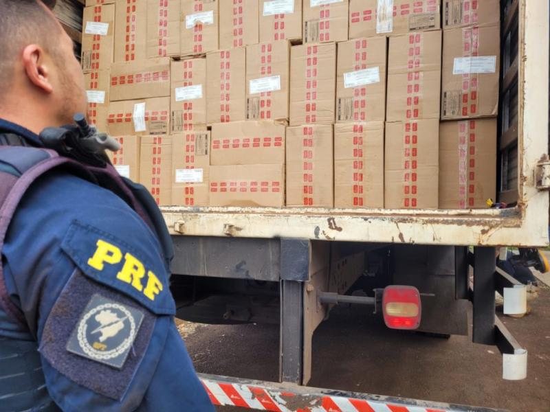 Ao vistoriarem o compartimento de carga, encontraram cerca de 400 caixas de cigarros do Paraguai. O |