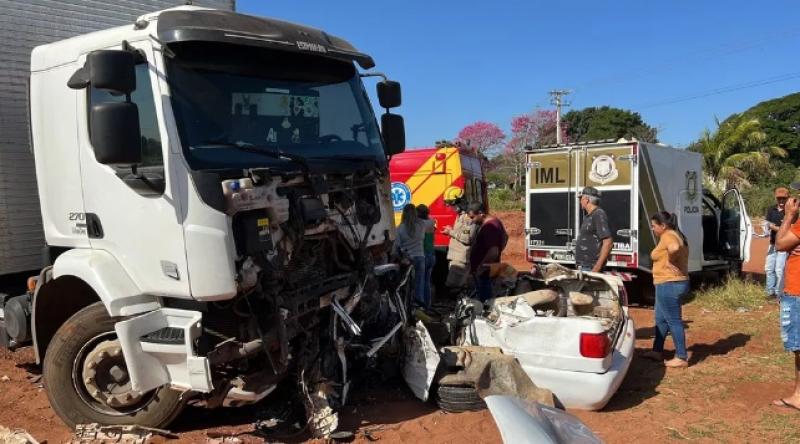 De acordo com a Polícia Rodoviária Federal, o acidente aconteceu por volta das 23h no km 40 e envolveu um GM/Corsa e um caminhão |