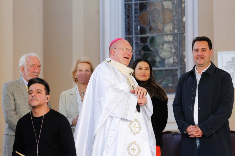 Aproximadamente 90 mil pessoas lotaram as ruas do centro da capital nesta quinta-feira (16) para acompanhar a tradicional missa de Corpus Christi. O governador Carlos Massa Ratinho Junior participou da missa na Catedral Basílica Menor de Nossa Senhora da Luz dos Pinhais, celebrada pelo |