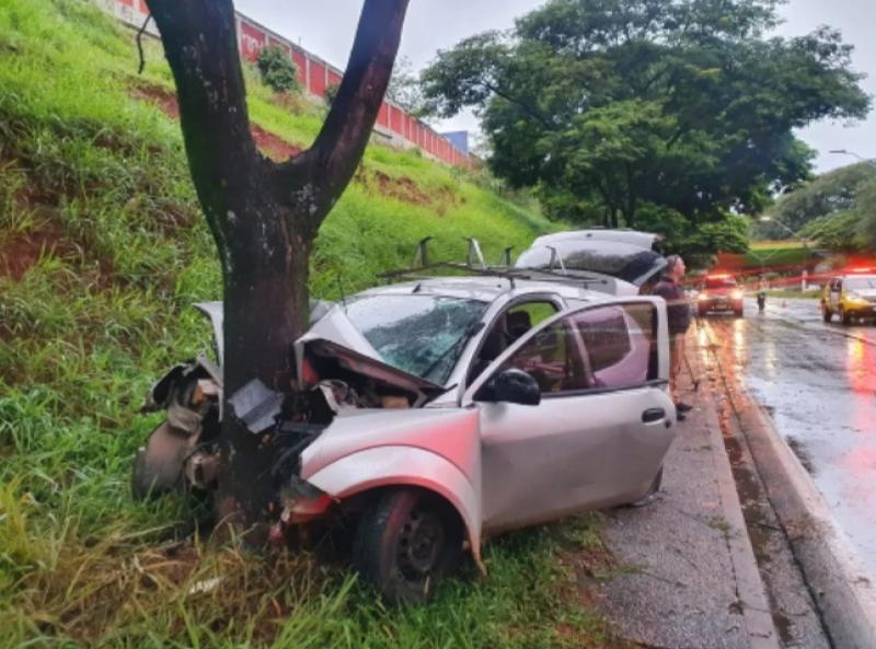 Um jovem morreu e outros dois ficaram gravemente feridos depois de um carro bater contra uma árvore em Londrina, no norte do Paraná, na manhã deste sábado (23). Ele estava no banco do passageiro.