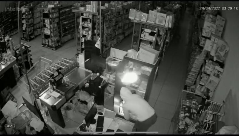Câmeras de monitoramento flagraram o elemento andar pelo estabelecimento comercial vasculhando o que pudesse levar. Entrou no |