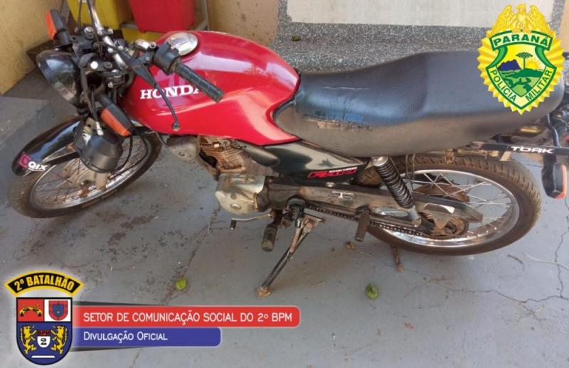 Uma motocicleta roubada em Santo Antônio da Platina/PR foi recuperada pela Polícia Militar na manhã de sábado, 22, em Joaquim Távora/PR.