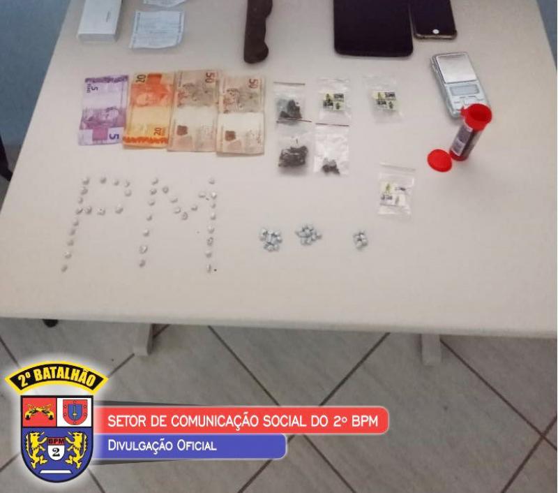 Havia três saquinhos plásticos contendo maconha, pequena quantia de dinheiro e um recipiente com mais 63 |