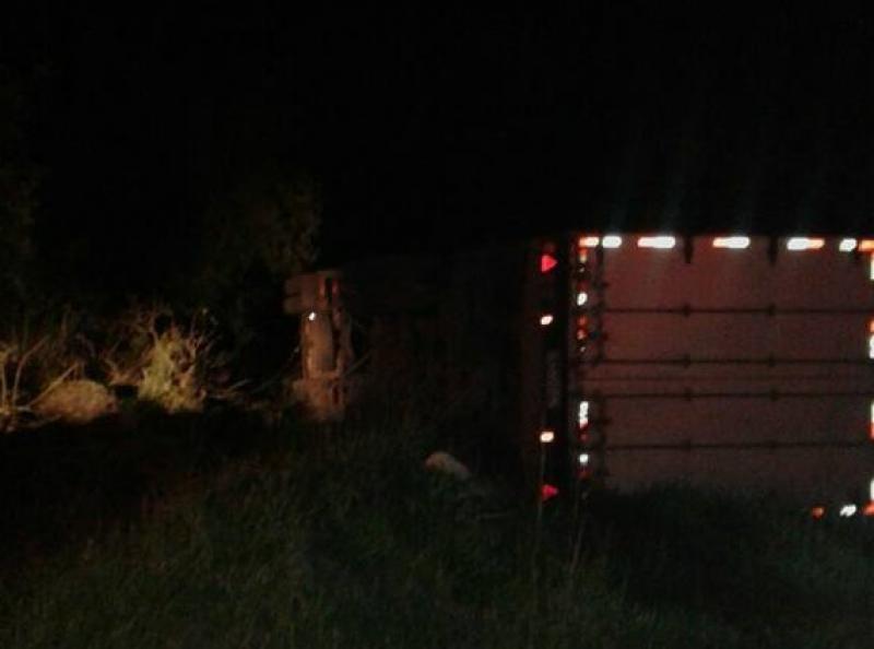 Um caminhão com placas de Caxias do Sul tombou por volta das 20h40 da última quarta-feira (3) no quilômetro 286 da PR-092, próximo ao município de Siqueira Campos, no Norte Pioneiro.