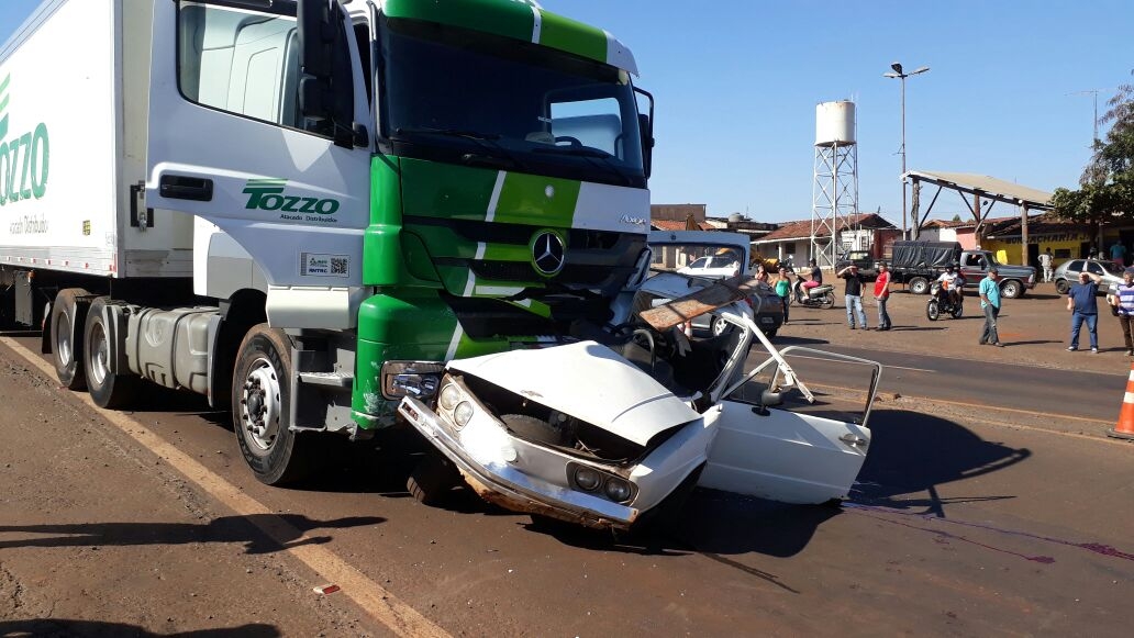 Segundo informações, a vítima estava em um VW Brasília que acabou atingido em cheio por uma carreta que teria 'furado' o semáforo no momento em que o carro cruzava a rodovia.