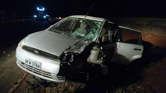 Um Fiat Uno, com placas de Londrina, e um Ford Fiesta da Barra do Jacaré colidiram frontalmente em uma curva no quilômetro 376 da rodovia, próximo a Mitriso Agrícola.