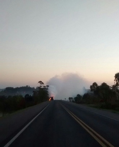 Um caminhão carregado com 30 toneladas de dinamite pegou fogo no fim da tarde deste domingo, 10, na PR-092, no trecho entre Arapoti e Wenceslau Braz.
