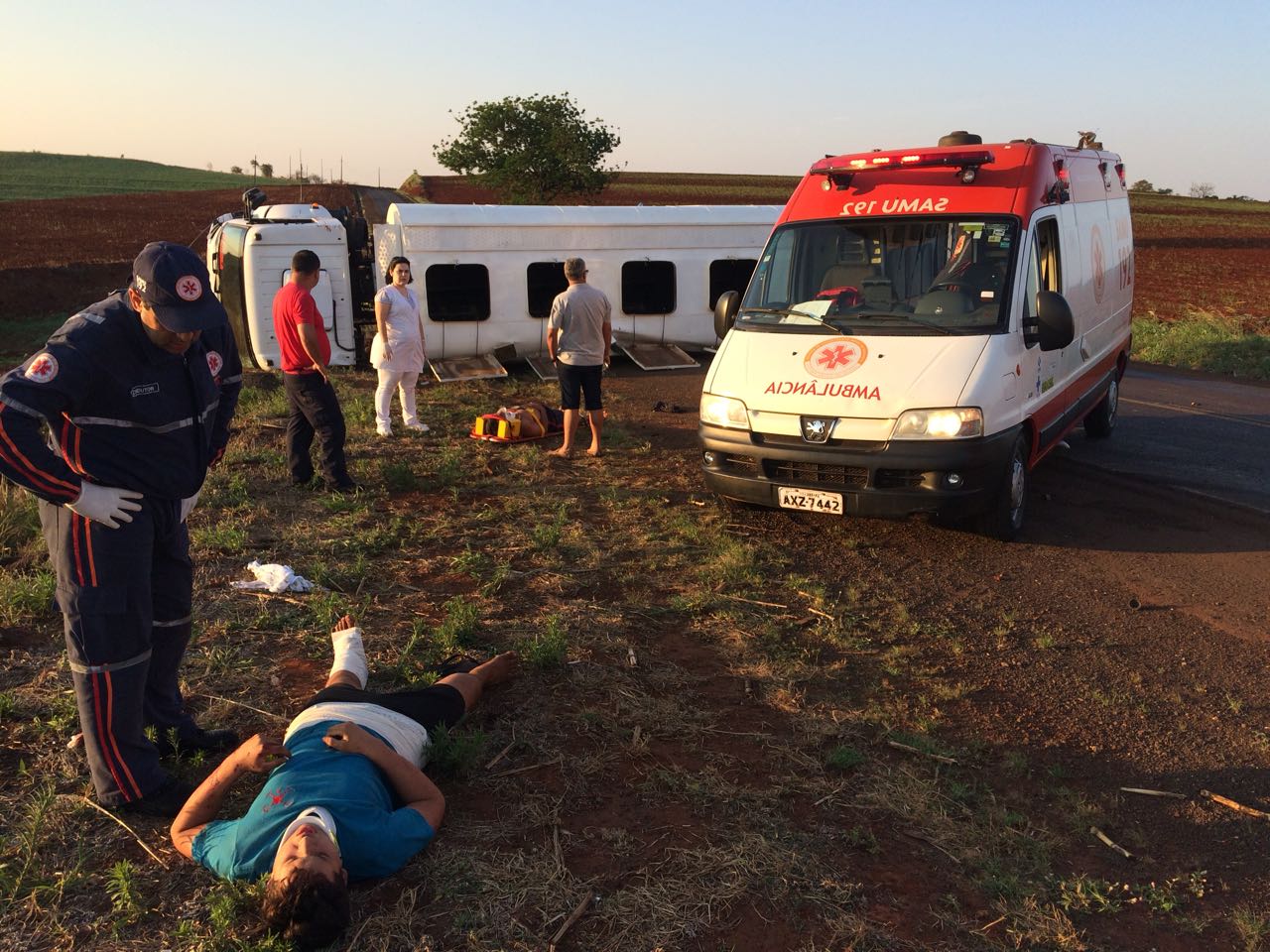 O motorista, o ajudante e um adolescente receberam os primeiros socorros de duas enfermeiras que passavam pelo local e foram encaminhados pelo Samu ao Pronto Socorro da Santa Casa de Misericórdia de Jacarezinho.