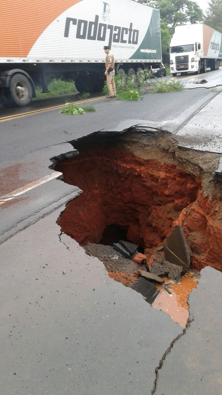 A Polícia Rodoviária Estadual (PRF) sinalizou o local e comunicou o Departamento de Estradas de Rodagens do Paraná (DER-PR), responsável pela manutenção da pista.