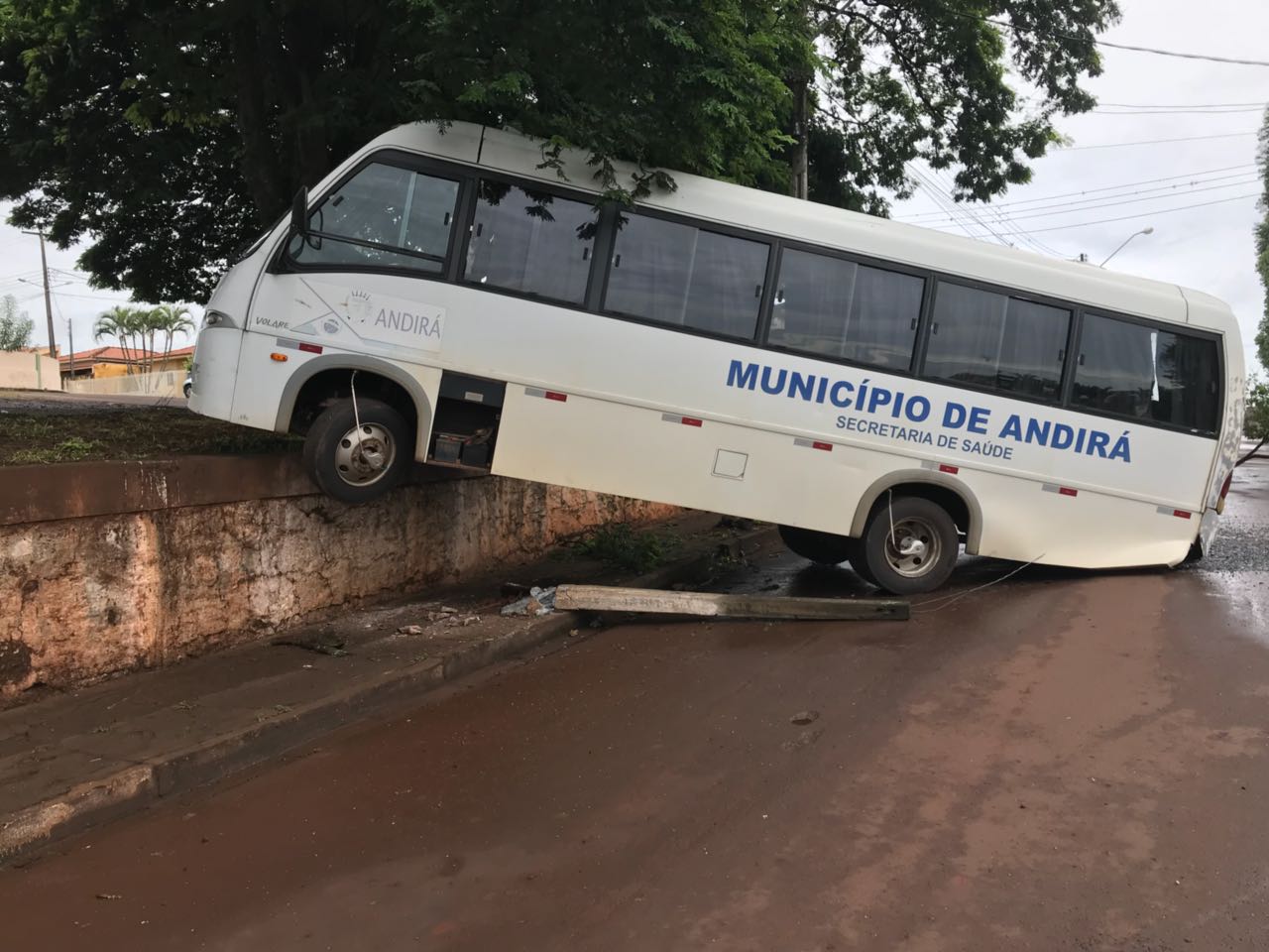 Um acidente com um ônibus da Secretaria Municipal de Saúde de Andirá assustou os moradores na manhã desta quarta-feira (17). O coletivo apresentou problemas mecânicos e desceu desgovernado a rua Major Barbosa Ferraz, no centro da cidade, até atingir um muro. De acordo com a Assessoria de Imprensa da Prefeitura, o veículo estava no estacionamento da Sociedade Hospitalar Beneficente de Andirá. O acidente resultou em danos matérias apenas no para-choque do ônibus. Ninguém se feriu.