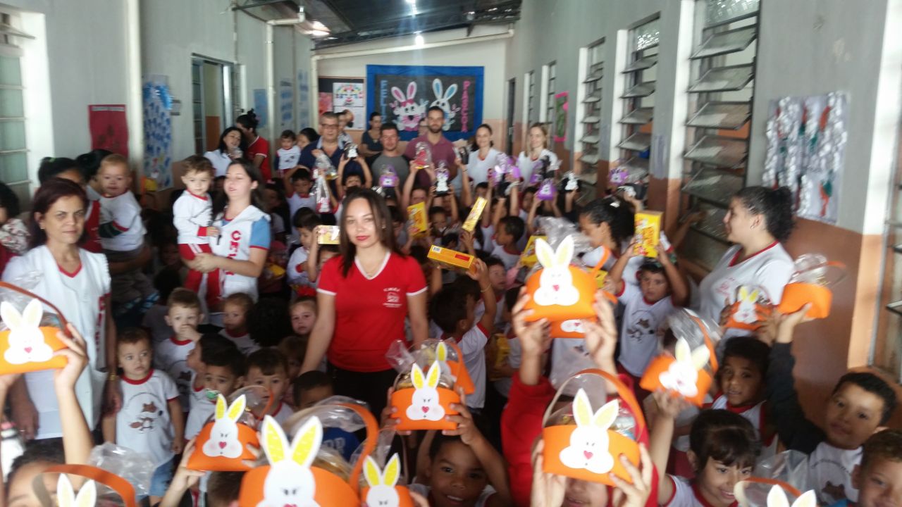 A Páscoa é uma festa muito aguardada pelas crianças, em especial por causa do chocolate. Nesta quinta-feira (29), o prefeito Gelson Mansur Nassar,secretária de Educação Delzuita Vieira de Souza, vereadores Gusmann L. Walker,Marcelo Santos, estão vendo de perto, olhinhos brilhantes e muitos sorrisos.