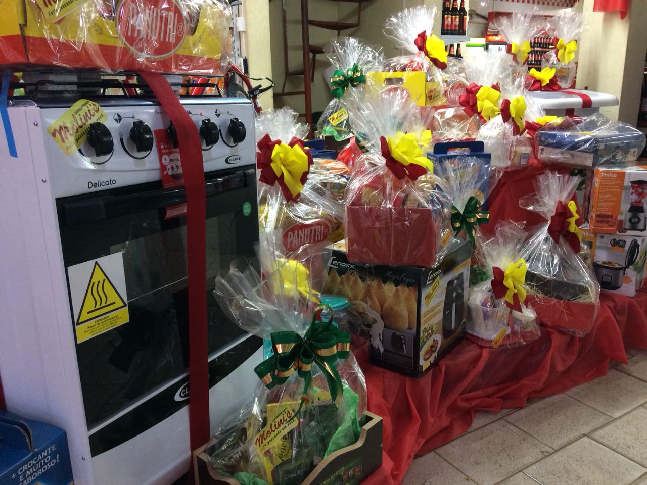 “A cada R$ 100 em compras o cliente ganha um cupom para participar do show de prêmios. Ao todo serão sorteados mais de 30 prêmios”, disse. Serão sorteados kit churrasco, cestas diversas, kits utilidades, vale compras e eletroportáteis. Também serão sorteados prêmios especiais nos dias 28 de abril e 5 de maio, como uma bicicleta 18 marchas, um tanquinho, um fogão quatro bocas e uma televisão 32 polegadas.