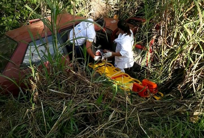 Segundo informações, o motorista não seria habilitado e teria perdido o controle da direção do veículo em uma curva antes de sair da pista e capotar em uma grota.