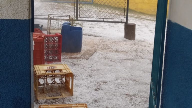 Um temporal acompanhado de granizo provocou pânico nos moradores de Sengés na tarde desta segunda-feira (30). A chuva, acompanhada de ventos fortes, durou aproximadamente dez minutos. Segundo os meteorologistas do Instituto Simepar, o granizo foi provocado por uma área de instabilidade que se deslocou rápido pela região. Carros que estavam nas ruas também foram danificados com a queda do granizo.