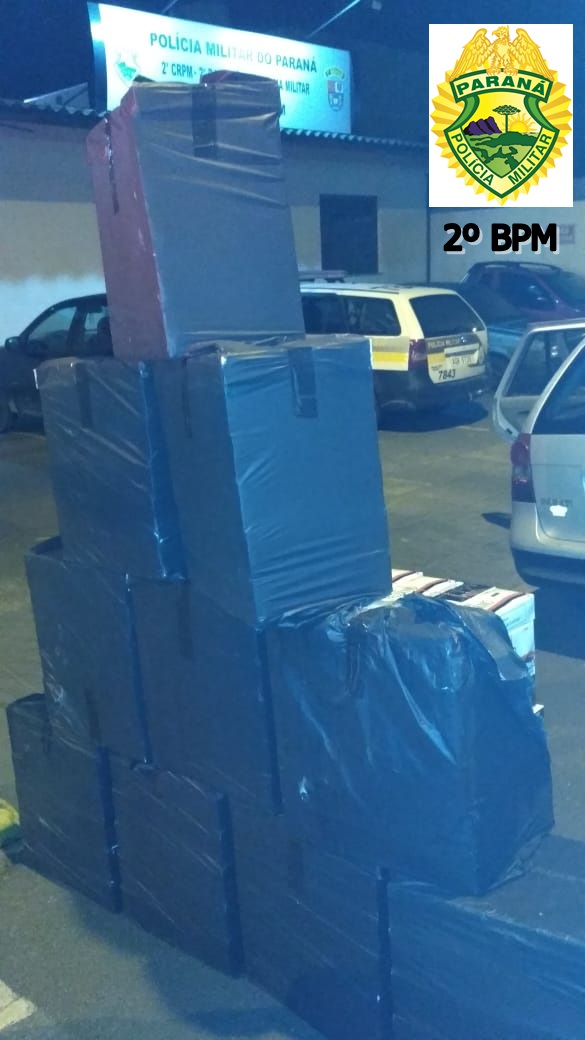 Durante bloqueio policial noite de ontem quinta-feira (27), os policiais militares abordaram um veículo VW Parati, cor prata, no qual foi possível constatar algo coberto por um tecido preto; averiguado, foi constatado que se tratava de vários pacotes de cigarros contrabandeados do Paraguai, totalizando 500 maços da marca Palermo.
