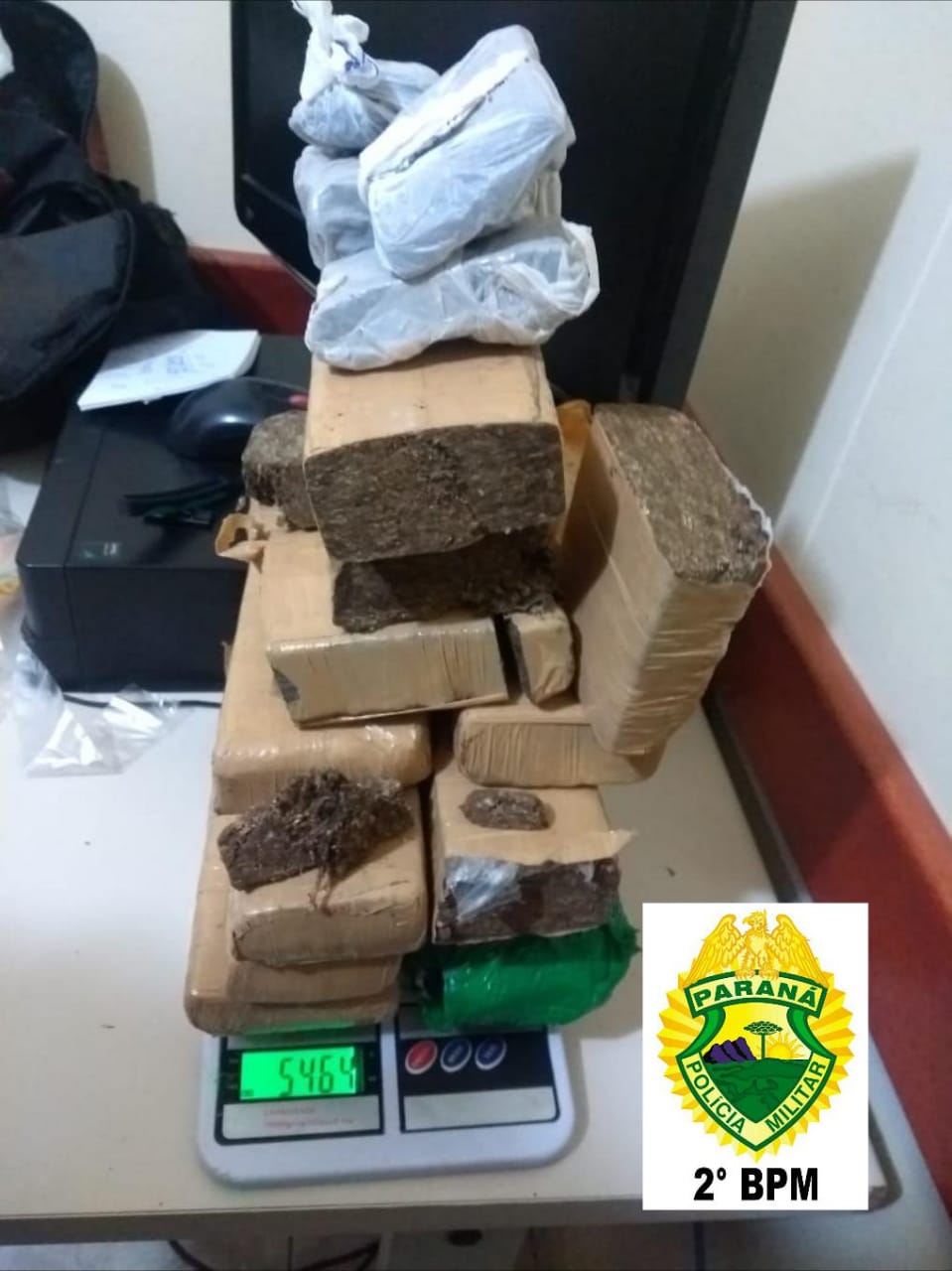Após entrevistarem os indivíduos, um deles confessou possuir mais drogas em sua residência. Os policiais militares foram até o local indicado e encontraram escondido em um fundo falso de um fogão mais 5,478 Kg de maconha.