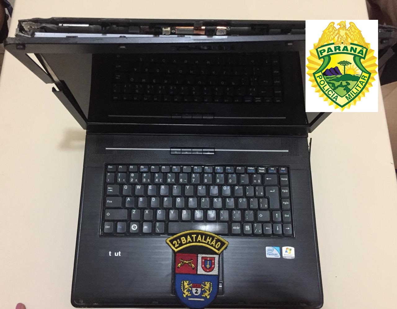 Em diligências acerca de um furto na igreja adventista em Quatiguá, os Policiais Militares encontraram no quintal da residência do suspeito, uma escada a qual utilizou para adentrar a igreja, onde subtraiu um televisor, duas caixas de som, um notebook, um dvd, entre outros itens eletrônicos e ainda danificou vários objetos, como vasos, lixeiras e cadeira.