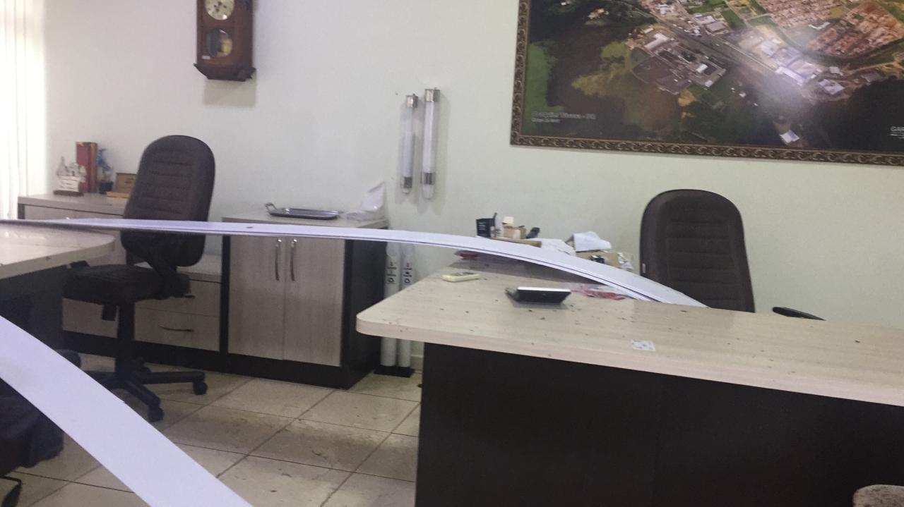 A sede da prefeitura municipal e principalmente na parte do gabinete do prefeito municipal (foto), parte do forro cedeu, com volume intenso da chuva.