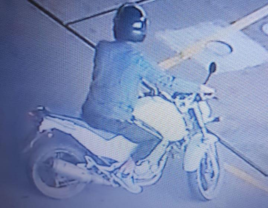 Imagens captadas por câmeras de segurança mostram dois homens, em uma CB 300 de cor branca, chegando pouco antes do meio-dia no Posto Avenida, localizado na área central da cidade.