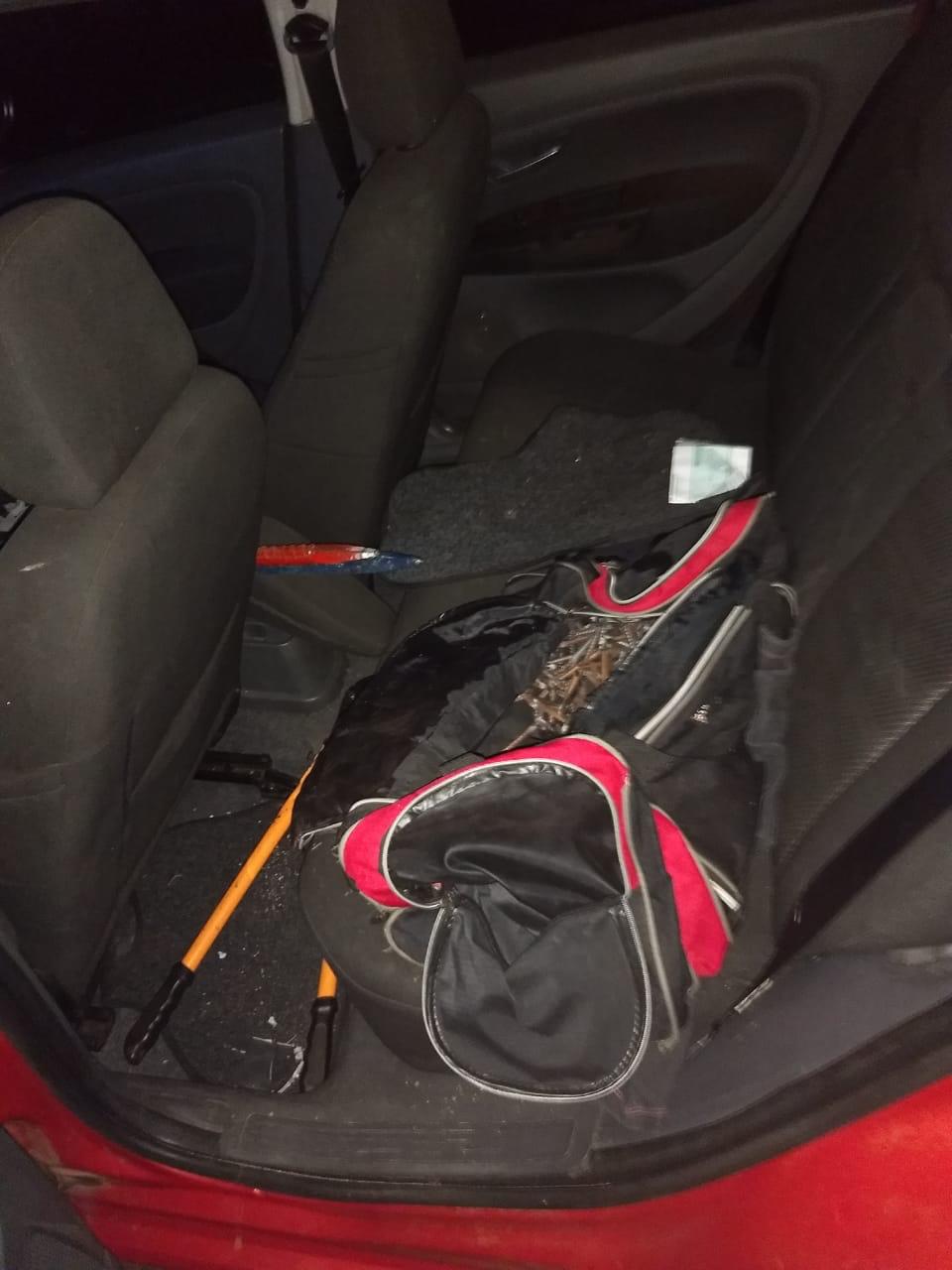Dentro do veículo foi encontrada parte do dinheiro oriundo do crime e um pé de cabra. Já na mata, também foi encontrado um tablete de explosivo.