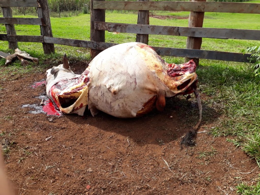 Mais um pecuarista foi vítima de ‘ladrões de gado’, em Santo Antônio da Platina. Desta vez no sítio Santa Cruz, no bairro 100 Alqueires. Os criminosos invadiram a propriedade durante a madrugada desta sexta-feira (3) e abateram um touro nelore pesando 25 arrobas. O animal foi sacrificado na mangueira, mas apenas parte da carne foi levada pela quadrilha.