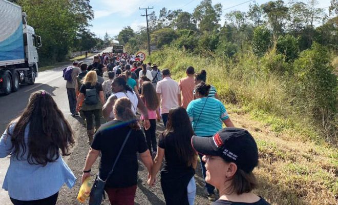 Um grupo – formado por mais de 100 jovens católicos -participou de uma manifestação de fé na manhã deste domingo, dia 21. Durante o trajeto, os caminhantes receberam frutas e água para hidratar, e foram acompanhados por carro de som e ambulância. Não houve nenhum contratempo e o evento foi considerado um sucesso.