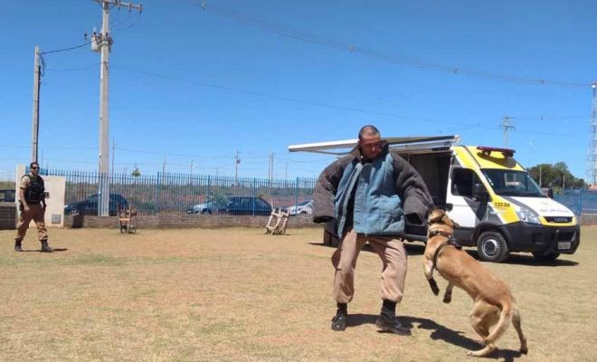 O projeto “Operações com Cães” realizou apresentação para cerca de 260 alunos da Escola Municipal Professora Maria Antonieta Nagib, da cidade de Guapirama. Foi na tarde de quinta-feira, dia dez, na avenida Getúlio Vargas, em frente do cemitério local.