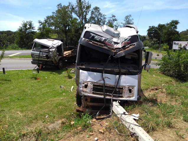 Os veículos foram parar do outro lado da pista, passando por cima de um canteiro central, destruindo um obelisco do Rotary Clube.