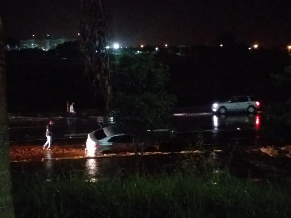 Em outra imagem, Tom Oliveira mostra o alagamento no viaduto recém construído na BR-153, acesso ao município de Santo Antônio da Platina, que já apresenta problemas em relação à drenagem de água quando ocorre volume maior de precipitação.