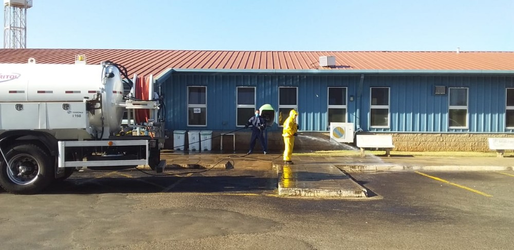 Funcionários da Sanepar executaram no domingo (10) processos de desinfecção com hipoclorito de sódio no Pronto Socorro Municipal e no Hospital Regional do Norte Pioneiro, em Santo Antônio da Platina.