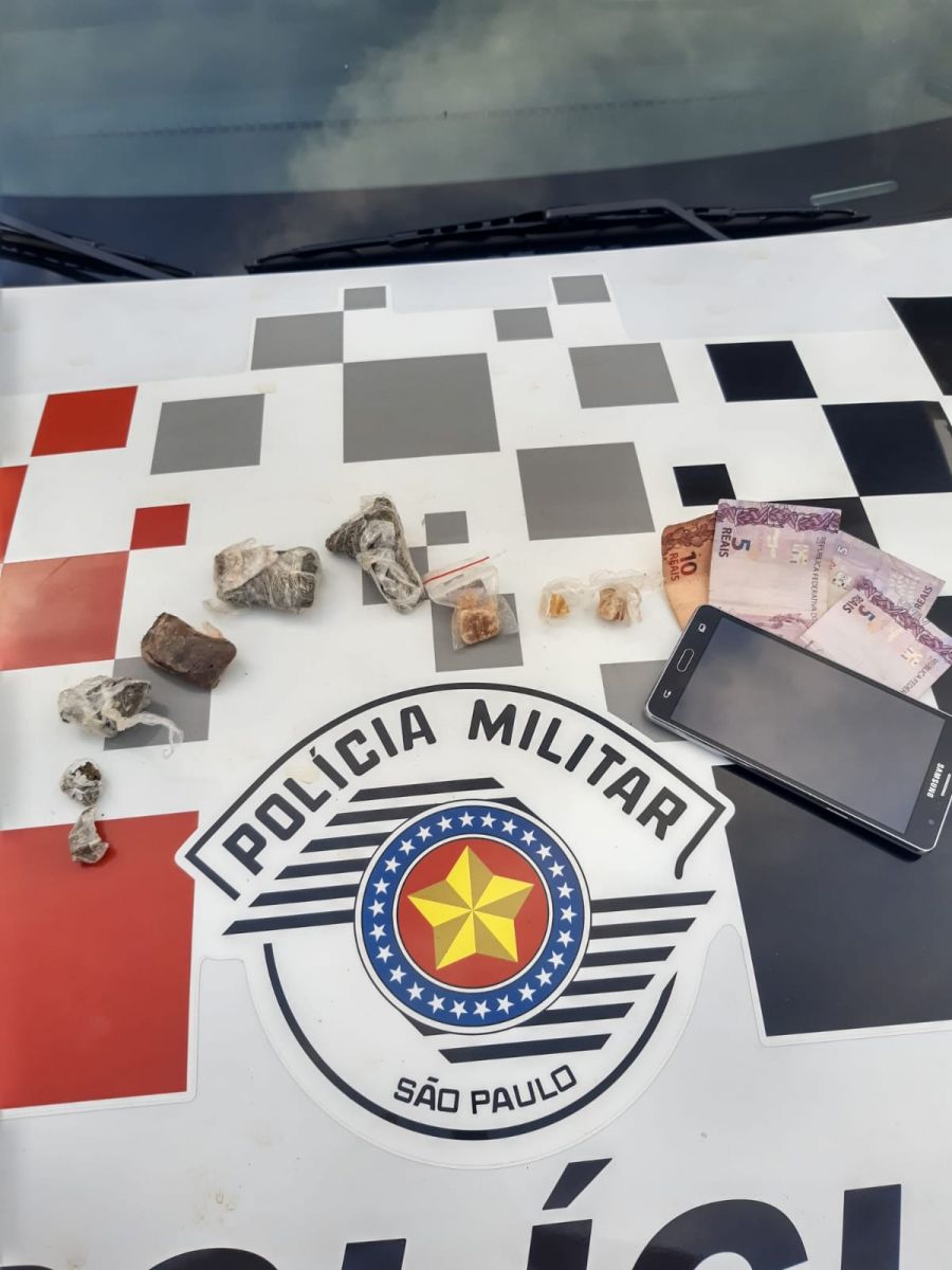 De acordo com a Polícia Militar, por volta da 0h40, Vitor Eduardo do Nascimento Coelho foi abordado na Avenida Heraldo Nascimento Abujamra, no Jardim Itamaraty, onde de acordo com denúncias, o jovem estaria nas proximidades de uma padaria vendendo drogas. Com ele os policiais localizaram 21 pedras de crack, cinco porções de maconha, R$191,00 em dinheiro, além do celular.