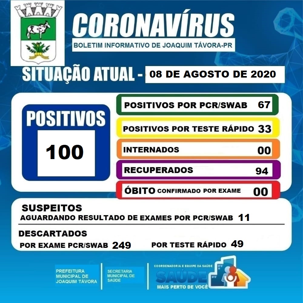 A Prefeitura de Joaquim Távora, através da secretaria municipal de saúde, divulga mais um boletim de coronavírus no município, neste sábado (08).