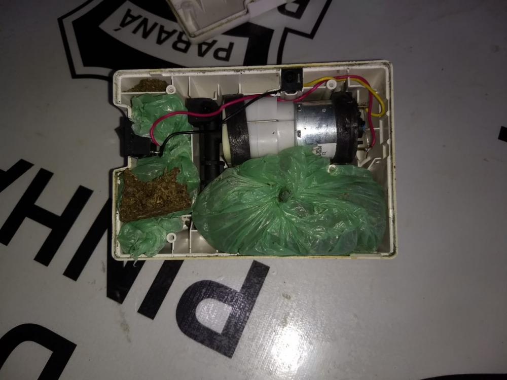 O investigador de polícia de plantão e o guarda prisional vistoriaram o aparelho e localizaram quase duzentos gramas da droga.