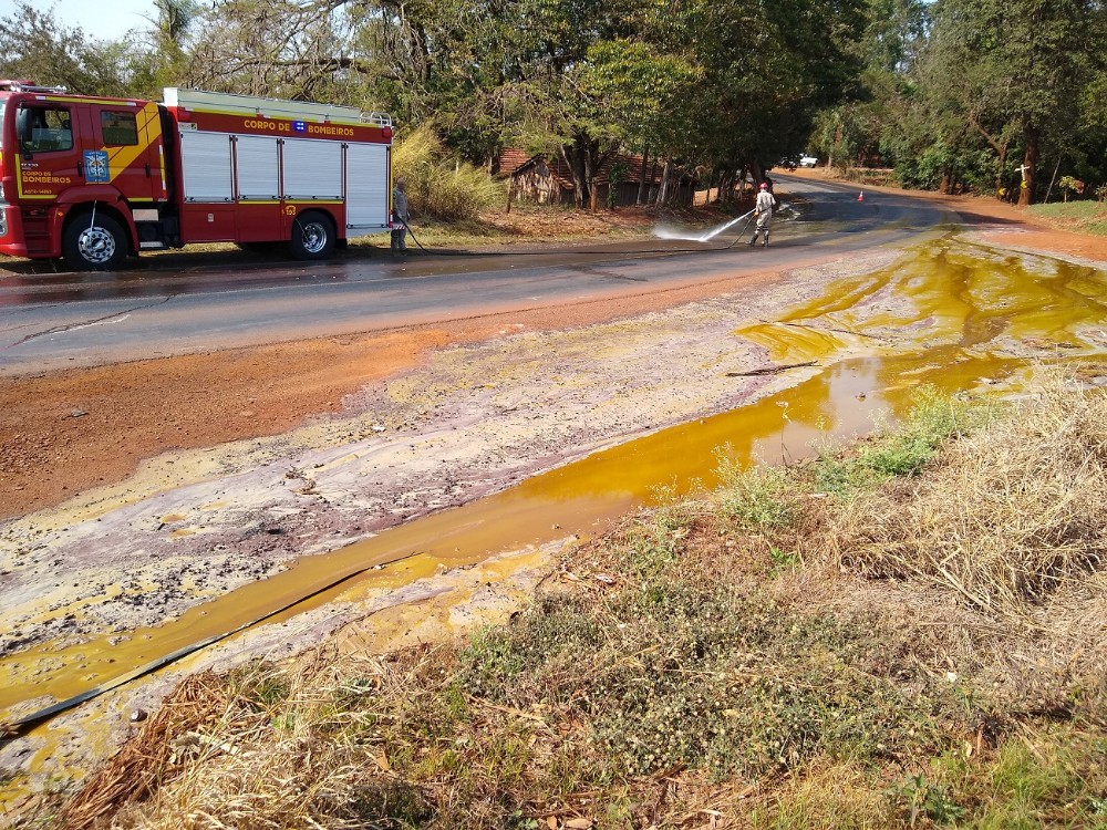 O veículo com placas de Curitiba – PR (Scania/G 420 A4X2) transportava óleo vegetal, que se espalhou à margem da rodovia. A Polícia Ambiental e o Instituto Água e Terra avaliam possíveis danos ambientais no local.
