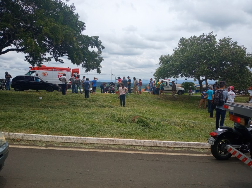 Segundo informações de pessoas próximas ao local, uma moto com placa de Jacarezinho com dois ocupantes seguia (sentido Posto Transbasiliana/AABB) quando atropelou uma mulher que cruzava a pista.