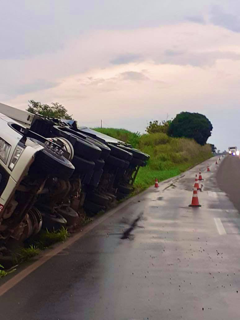 Uma carreta (placas de Ituporanga/Santa Catarina) tombou no KM 28 da BR-153 neste final de semana, em Jacarezinho.