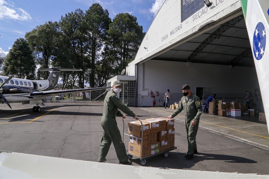 O Governo do Estado iniciou nesta sexta-feira (2) a distribuição às 22 Regionais de Saúde de parte do novo lote de vacinas enviadas pelo Ministério da Saúde ao Paraná na quinta-feira (1). Às 14h, 7.839 doses do imunizante Coronavac, produzido pelo laboratório Sinovac com o Instituto Butantan, saíram do Centro de Medicamentos do Paraná (Cemepar) para o Aeroporto do Bacacheri, em Curitiba, para de lá partirem para o Interior em 4 aeronaves e um helicóptero do Estado. Nas regionais mais próximas, as doses foram enviadas por via terrestre.