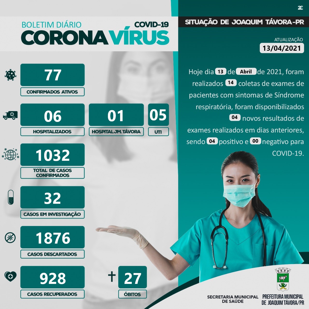 O município de Joaquim Távora, registrou hoje, terça-feira dia 13 de abril, mais uma morte em decorrência da Covid-19.