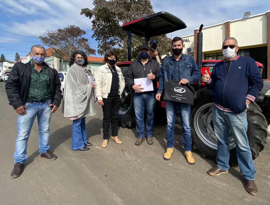 O trator Mahindra é advindo de convênio com o Ministério da Agricultura, Pecuária e Abastecimento.