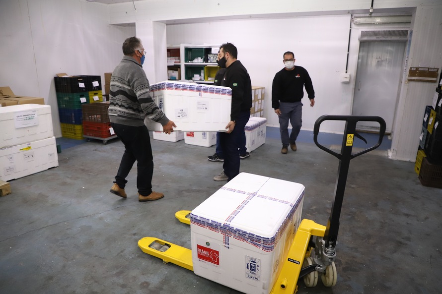 Na sequência, elas serão encaminhadas ao Centro de Medicamentos do Paraná (Cemepar), onde serão conferidas e separadas para o envio às 22 Regionais de Saúde do Estado. Elas se somam às 88.200 doses do imunizante Coronavac (Sinovac/Butantan) e 52.800 da Covishield (Oxford/AstraZeneca). A distribuição para os municípios deve começar na quarta-feira.