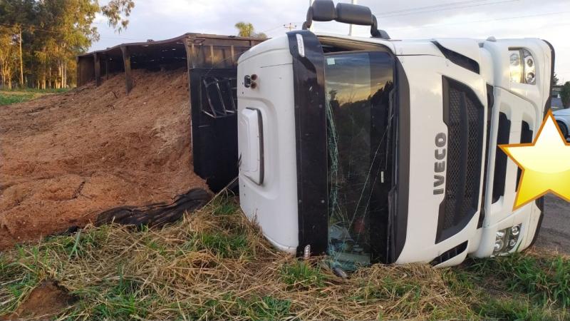 Uma carreta tombou no KM 297 da PR-092 às 16h30m desta quinta-feira, dia seis, em Quatiguá.O motorista da Iveco, modelo Stralis (placas de Jaguariaíva/PR) sofreu ferimentos leves e foi levado para o Hospital São Vicente, também de Quatiguá.