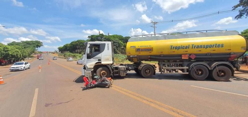 Na manhã de sábado, 20, por volta das 10h30, no km 36,6 da BR-369, em Andirá/PR, ocorreu um acidente de trânsito do tipo colisão transversal envolvendo uma carreta carregada de combustível e uma motocicleta Honda NXR150.