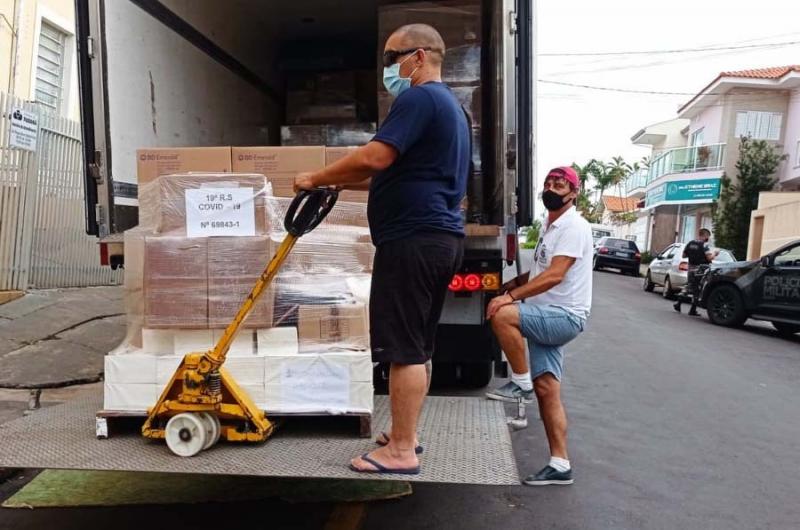 Quatro caminhões carregados com 2,2 milhões itens saíram na manhã deste sábado (16) do pátio da central de abastecimento e suprimentos da Secretaria da Saúde do Paraná, no Jardim Botânico, em Curitiba. Os veículos foram |
